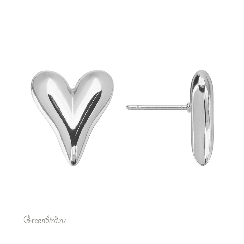 Пуссеты объемное сердечко - капля. Материал: латунь, покрытие: родий. Размер декоративного элемента: 14 х 12 х 4,5 мм, размер штырька: 10 x 0,8 мм. Обратите внимание: заглушки приобретаются отдельно .Производство: Китай. Цена указана за пару.