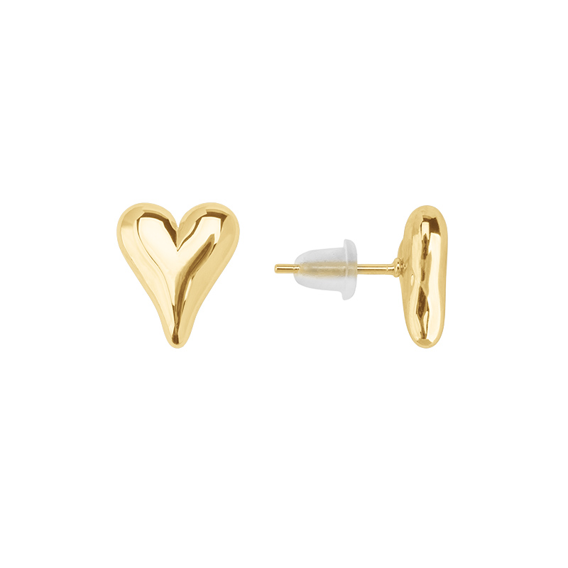 Пуссеты объемное сердечко-капля. Материал: латунь, покрытие: золото. Размер декоративного элемента: 10 х 8 х 3,5 мм, размер штырька: 10 x 0,8 мм. Силиконовые заглушки в комплекте. Производство: Китай. Цена указана за пару.