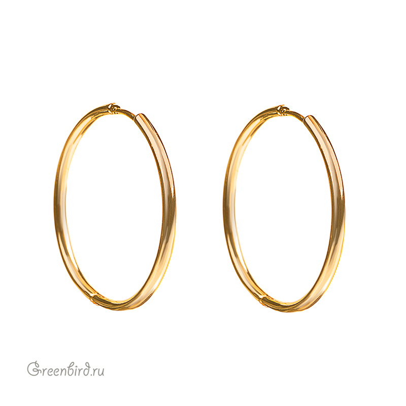 Фурнитура для бижутерии - объемные крупные швензы-кольца без колечек и креплений (бублики, серьги-конго), гладкие. Материал: латунь, покрытие: золото. Размер: 2,4 х 40 мм, длина дужки: 9,5 мм, толщина: примерно 1,1 мм, внутренний диаметр кольца: 35,8 мм. Производство: Китай. Цена указана за пару.