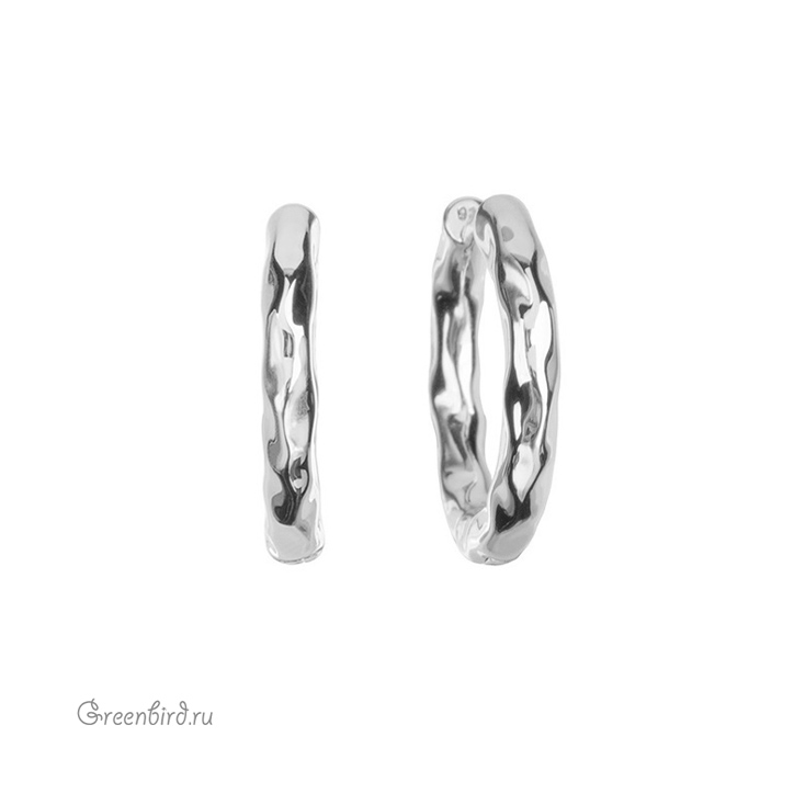 Фурнитура для бижутерии - объемные швензы-кольца без колечек и креплений (бублики, серьги-конго), текстурированные (эффект мятого материала). Материал: латунь, покрытие: родий. Размер: 3 х 18 мм, толщина дужки: 1,1 х 1,2 мм, внутренний диаметр: 13 мм. Производство: Китай. Цена указана за пару.