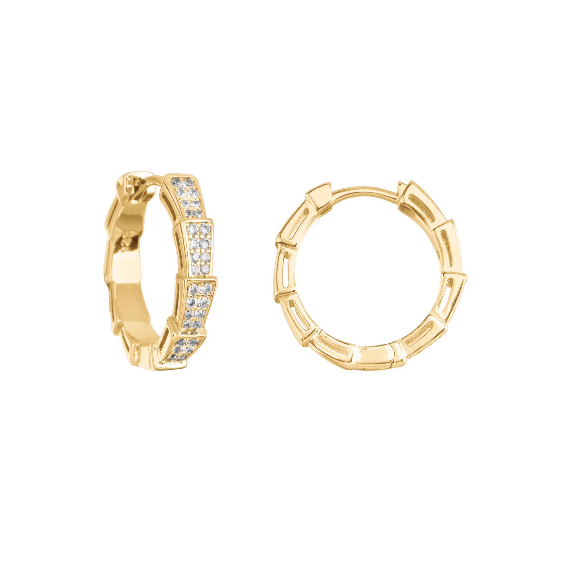 Фурнитура для бижутерии - объемные швензы-кольца без колечек и креплений (бублики, серьги-конго), инкрустация фианитами. Материал: латунь, покрытие: золото. Размер: 21 х 3.8 мм, длина дужки: 7 мм, толщина примерно 1,1 мм. Производство: Китай. Цена указана за пару.