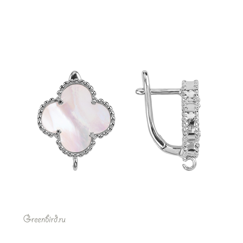 Фурнитура для бижутерии - швензы с английским замком, перламутровой вставкой и незапаянным колечком для подвески. Материал: латунь, покрытие: родий. Цвет: белый. Размер декоративного элемента с колечком: 15 х 18 мм, толщина дужки 1,2 мм, ширина дужки: 3 мм, толщина штырька: 1,1 х 1,2 мм, внутренний диаметр колечка: 1 мм. Производство: Китай. Цена указана за пару.