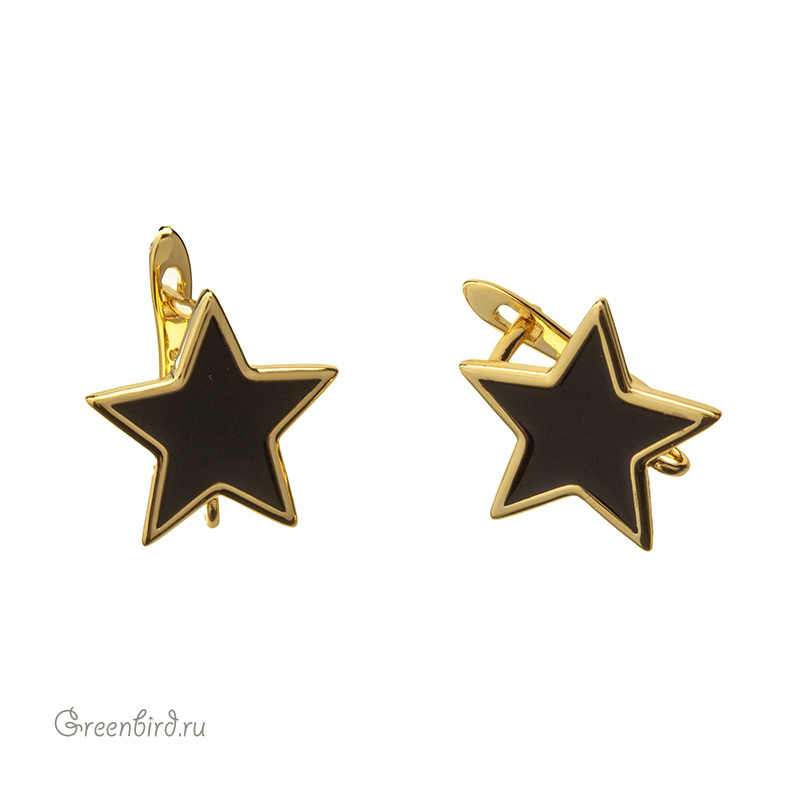 Фурнитура для бижутерии - швензы с английским замком и черной эмалью. Материал: латунь, покрытие: золото. Размер декоративного элемента с петелькой: 16 х 16,9 мм, толщина дужки 1,2 мм, ширина дужки: 3 мм, толщина штырька: 1 мм. Производство: Китай. Цена указана за пару.