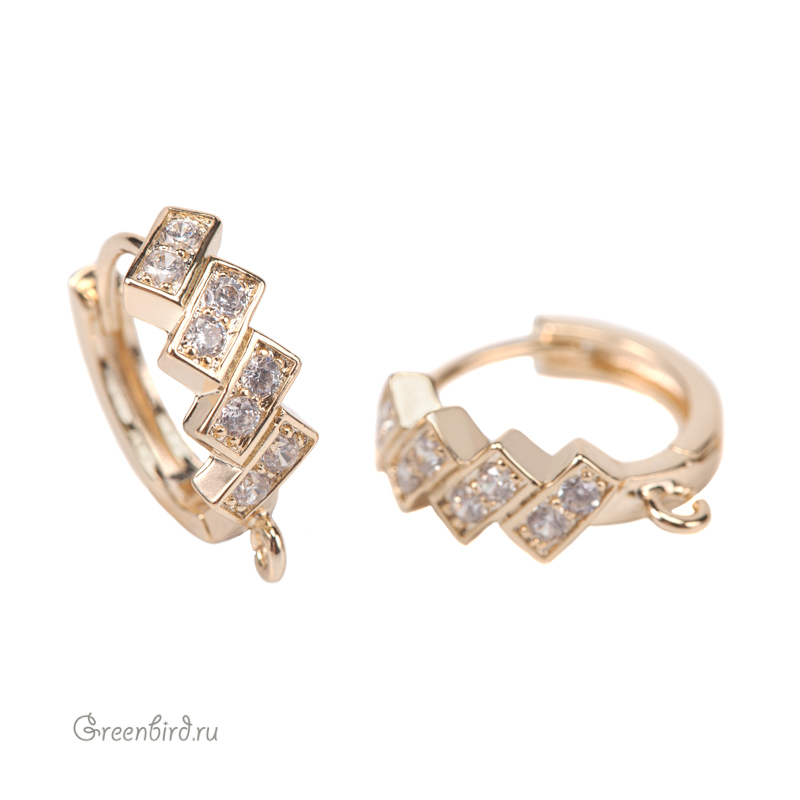 Фурнитура для бижутерии - круглые швензы с фианитами. Материал: латунь, покрытие: золото. Размер с петелькой: 6 х 17,5 мм, толщина дужки: 0,9 мм. Производство: Китай. Цена указана за пару.