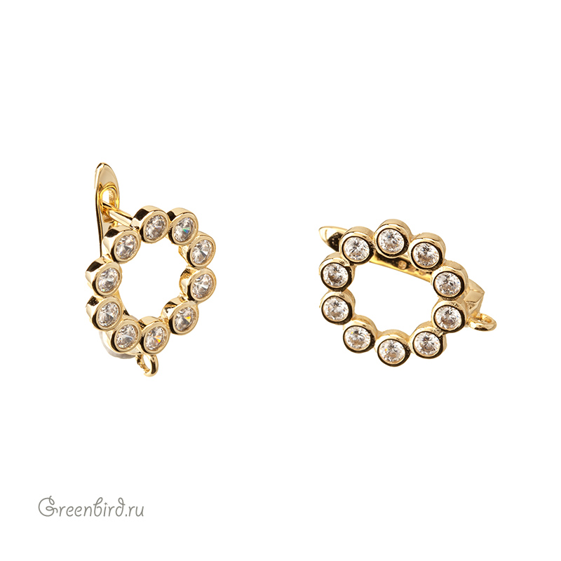 Фурнитура для бижутерии - швензы с английским замком и фианитами. Материал: латунь, покрытие: золото. Размер декоративного элемента с петелькой: 14,7 х 17,7 мм, толщина дужки 1,1 мм, ширина дужки: 2,8 мм, толщина штырька: 1 мм. Производство: Китай. Цена указана за пару.