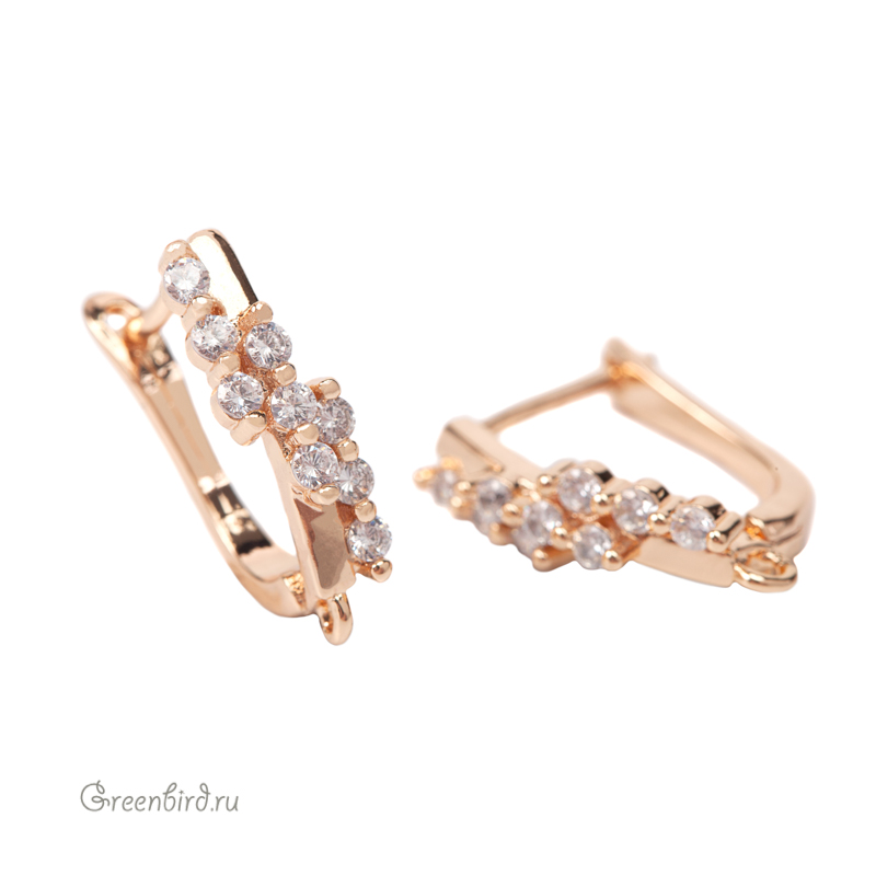 Фурнитура для бижутерии - швензы с английским замком и фианитами. Материал: латунь, покрытие: золото. Размер декоративного элемента с петелькой: 5,7 х 18,7 мм, толщина дужки 1,2 мм, ширина дужки: 2,8 мм, толщина штырька: 1 мм. Производство: Китай. Цена указана за пару.