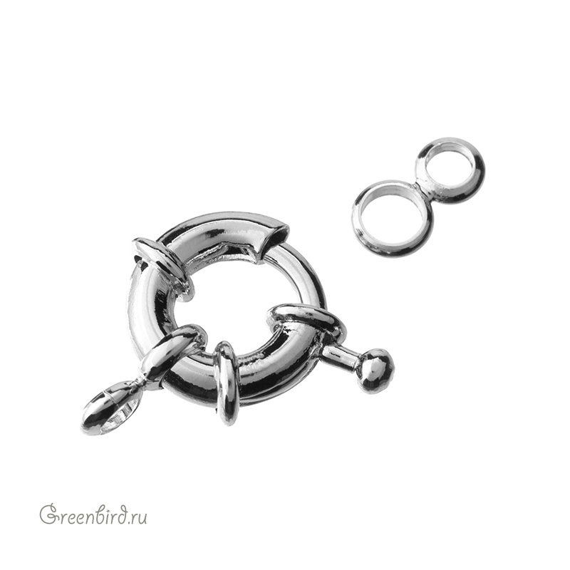 Фурнитура для бижутерии - замок-колечко в виде штурвала c двумя дополнительными неразъемными колечками. Материал: латунь, покрытие: родий. Размер замочка: 11 мм, внутренний диаметр: 6 мм, внутренний диаметр дополнительных колечек: 2,5 мм. Производство: Китай. Цена указана за 1 штуку.