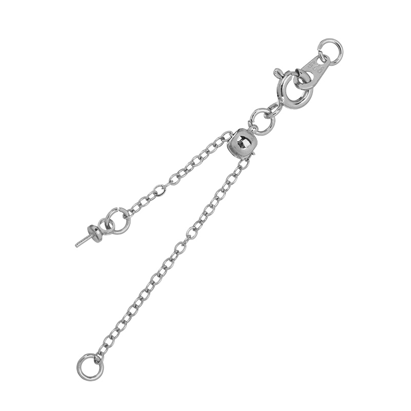 Фурнитура для бижутерии - замок-колечко с удлинителем, в комплекте со стоппером-ползунком и бейлом для вклеивания бусины. Материал: латунь, покрытие: родий. Диаметр замочка: 6 мм, цепочка: 57 мм, размер штырька для бусины: 3 x 0,6 мм. Производство: Китай. Цена указана за 1 штуку.