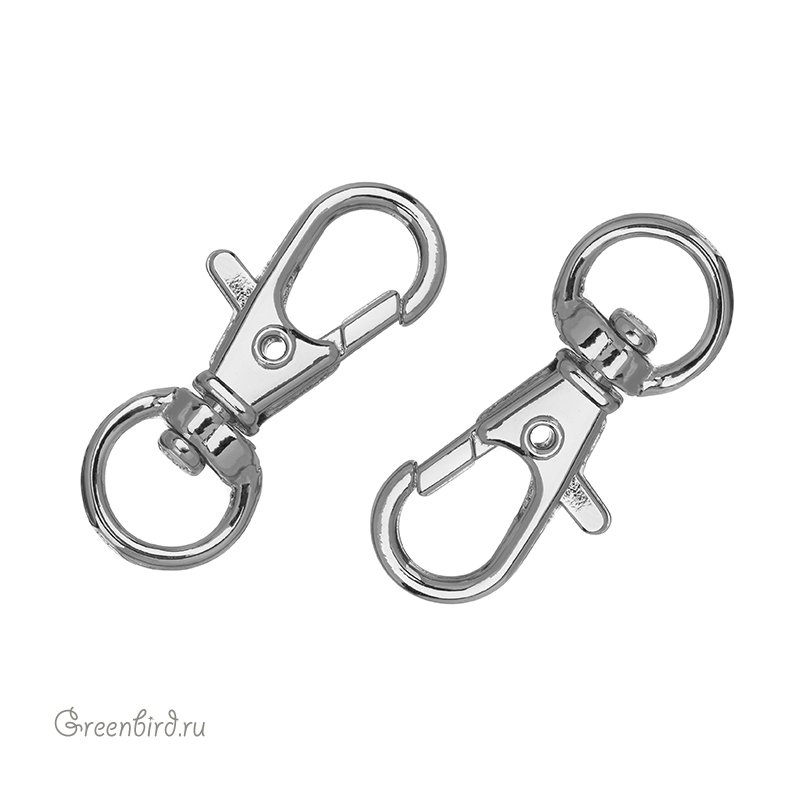 Фурнитура для бижутерии - поворотный замок-карабин. Материал: латунь; покрытие: родий. Размер замка: 35 х 12,5 мм; внутренний диаметр кольца: 9 мм. Производство: Китай. Цена указана за 1 штуку.