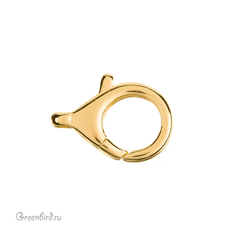 Фурнитура для бижутерии - замок-карабин. Материал: латунь; покрытие: золото. Размер замка: 16,5 х 11 х 4 мм; внутренний диаметр кольца: 7 мм. Производство: Китай. Цена указана за 1 штуку.