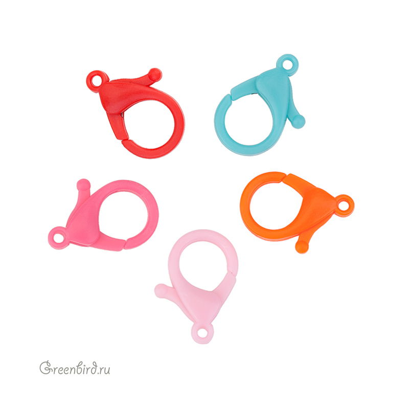 Фурнитура для бижутерии - пластиковый замок-карабин. Материал: акрил. Цвет: летний микс. Размер замка: 25,5 х 15 х 6 мм; внутренний диаметр соединительного колечка: 2,3 мм. Производство: Китай. Цена указана за упаковку (5 шт).