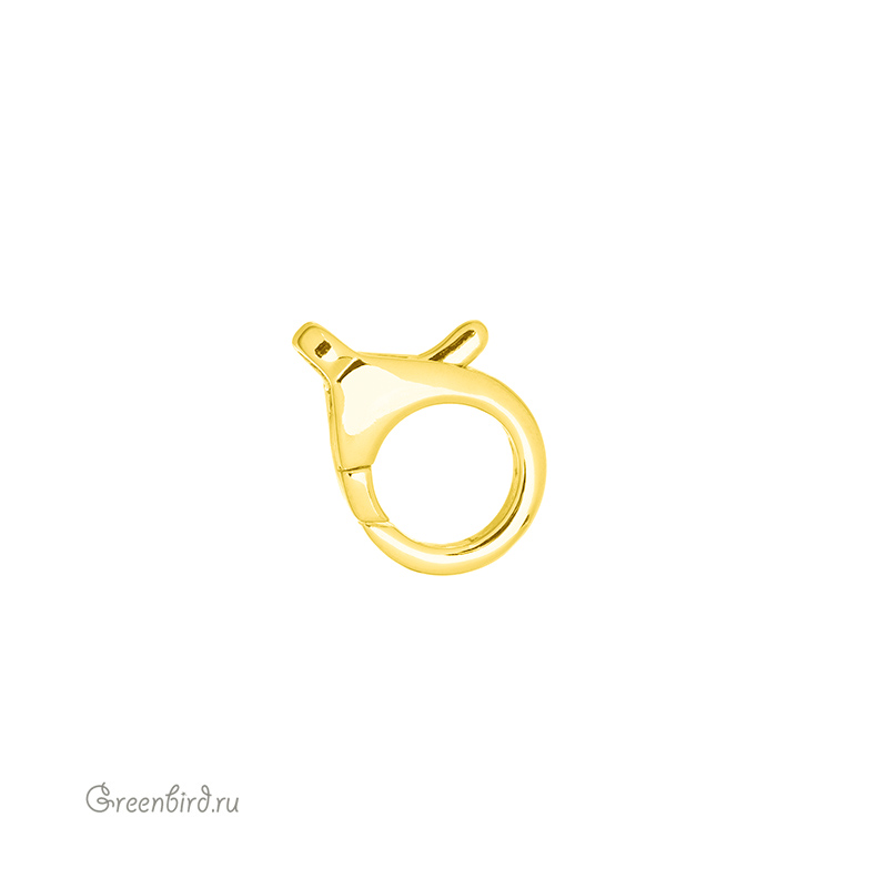 Фурнитура для бижутерии - замок-карабин. Материал: латунь; покрытие: золото. Размер замка: 20 х 14 х 4,4 мм; внутренний диаметр соединительного колечка: 2,3 мм. Производство: Китай. Цена указана за 1 штуку.