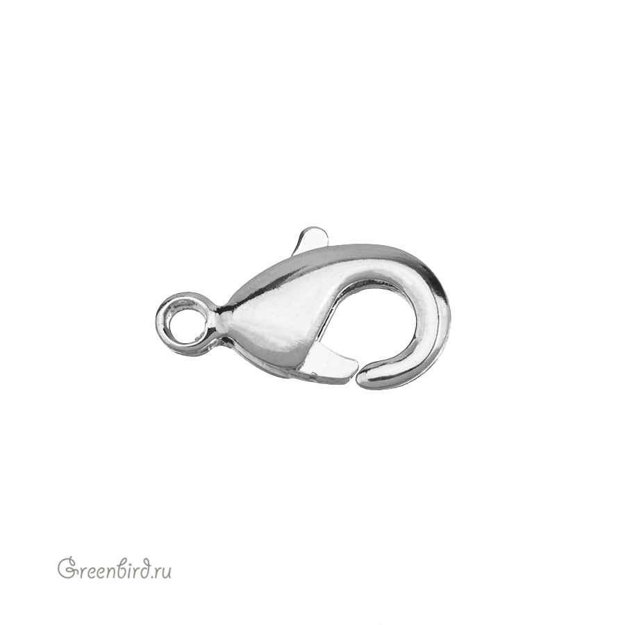 Фурнитура для бижутерии - замок-лобстер. Материал: латунь, покрытие: родий. Размер замка: примерно 10 х 5,3 мм, внутренний размер колечка: 1,1 мм. Производство: Китай. Цена указана за 1 штуку.