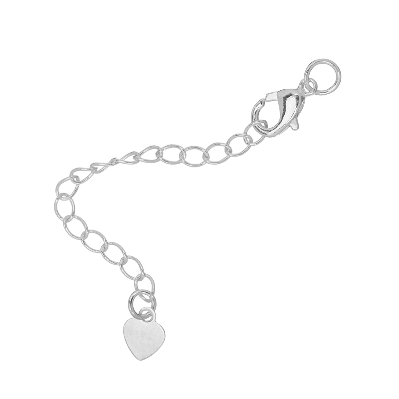 Фурнитура для бижутерии - замочек-лобстер с удлинительной цепочкой и плоской подвеской в форме сердца. Материал: латунь, цвет металла: светлое серебро. Размер замочка: 6 x 10 мм, цепочка: 50 мм, размер подвески: 6 x 8 x 0.5 мм. Производство: Китай. Цена указана за 1 штуку.