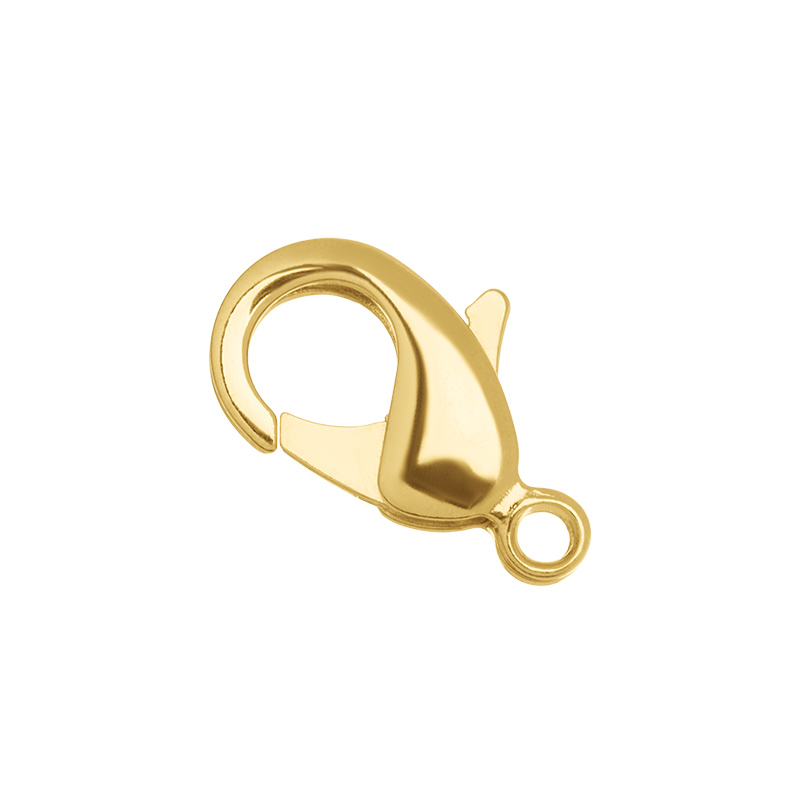 Фурнитура для бижутерии - замок-лобстер. Обратите внимание: замок идет без ответной части. Материал: латунь, покрытие: золото 18KGP. Размер замка: 19 х 10 мм, диаметр колечка: 2 мм. Производство: Китай. Цена указана за 1 штуку.