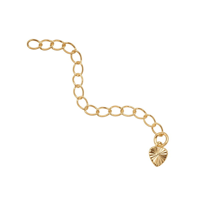 Фурнитура для бижутерии - удлинительная цепочка с плоской подвеской в форме сердца. Материал: латунь, цвет металла: желтое золото. Длина: 50 мм, размер подвески: 5 x 6.5 x 0.5 мм. Производство: Китай. Цена указана за 1 штуку.
