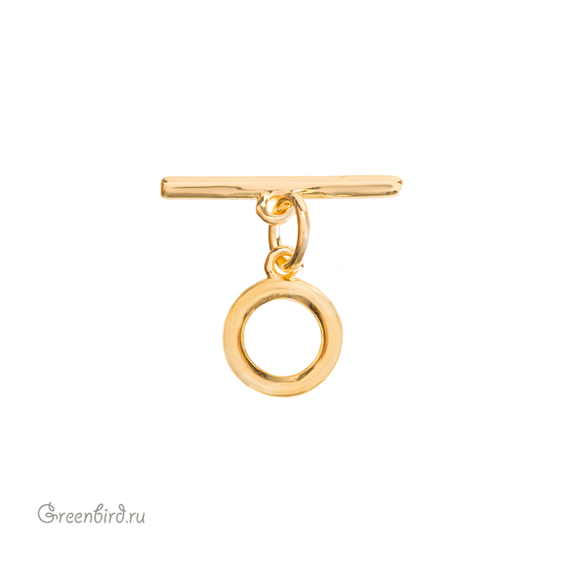 Фурнитура для бижутерии - замок-тоггл. Материал: латунь, покрытие: золото. Размер: круглая деталь с колечком - 9,7 мм, внешний диаметр - 7,6 мм, внутренний диаметр: 4,8 мм; палочка: 16 мм. Производство: Китай. Цена указана за 1 штуку.