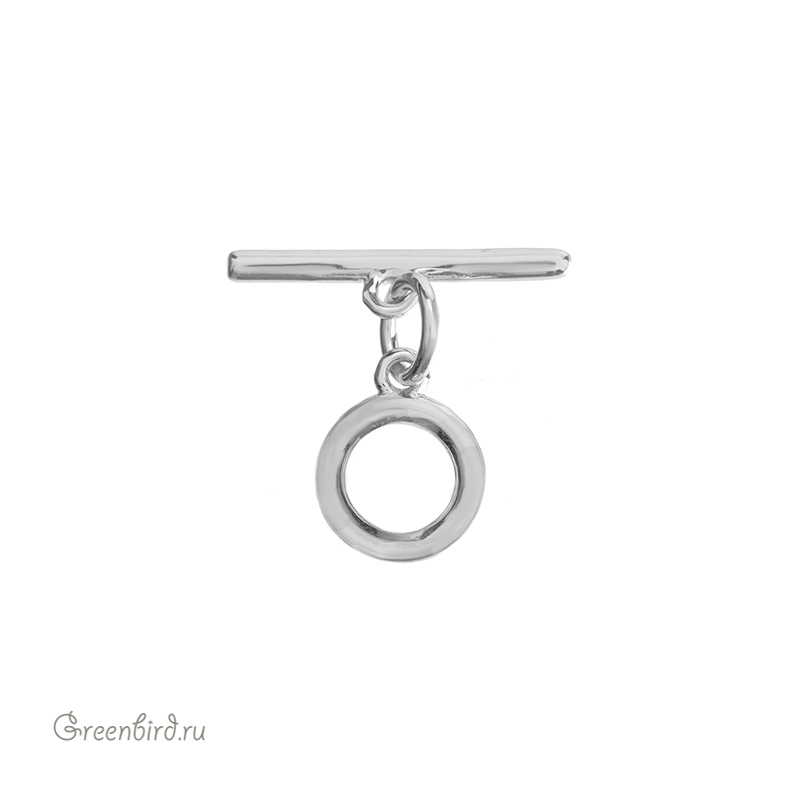 Фурнитура для бижутерии - замок-тоггл. Материал: латунь, покрытие: родий. Размер: круглая деталь с колечком - 9,7 мм, внешний диаметр - 7,6 мм, внутренний диаметр: 4,8 мм; палочка: 16 мм. Производство: Китай. Цена указана за 1 штуку.