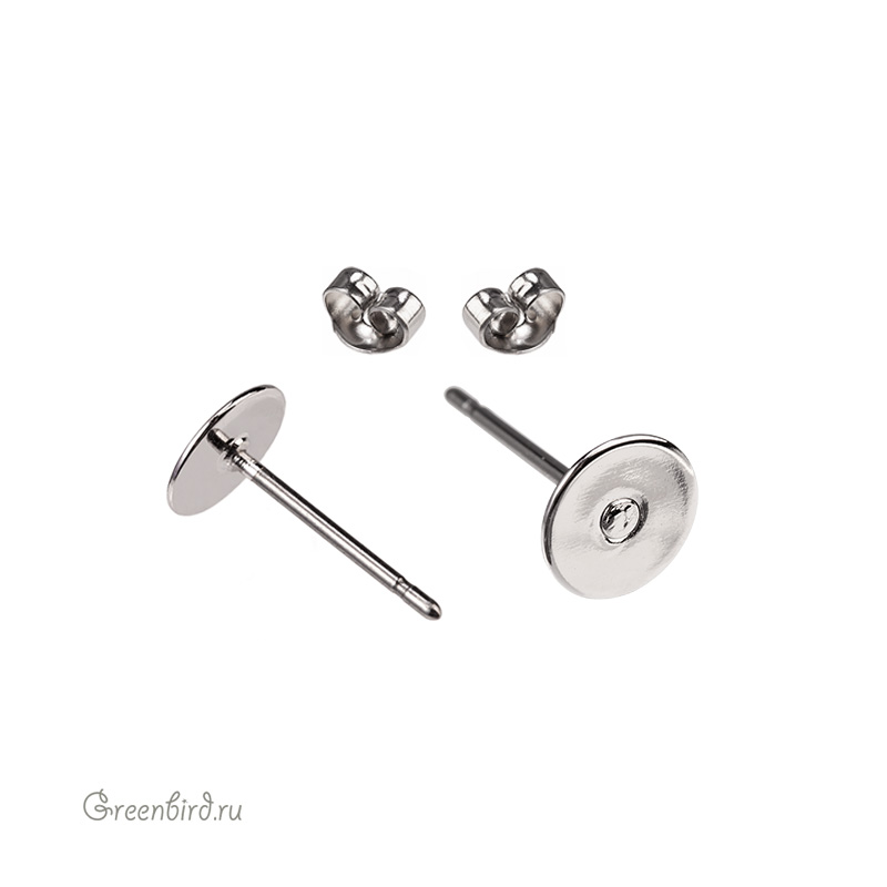 Фурнитура для бижутерии - пуссеты с платформой. Материал платформы: латунь, покрытие: родий, штырьки: хирургическая сталь. Размер платформы: 6,1 мм, толщина штырька 0,75 мм. Производство: Корея. Цена указана за пару.