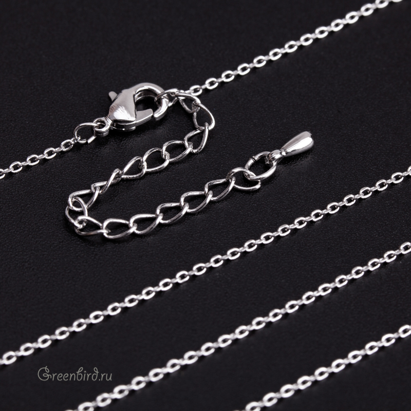 Фурнитура для бижутерии - цепочка с замочком-лобстером. Материал: латунь, покрытие: родий. Длина: 42 см плюс удлинитель 5 см, звенья: 1,1 х 1,3 мм. Производство: Корея. Цена указана за 1 штуку.