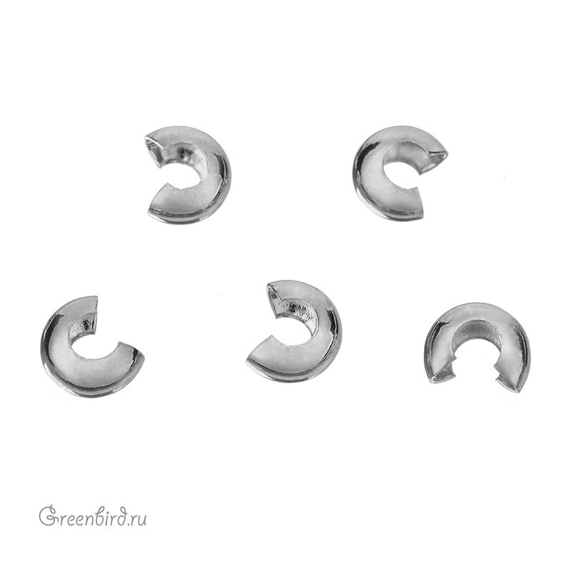 Фурнитура для бижутерии - бусина на кримп. Материал: латунь, покрытие: родий. Размер: 4 х 3,6 мм, отверстие: 1,8 мм. Производство: Китай. Цена указана за 1 шт.