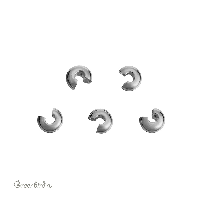 Фурнитура для бижутерии - бусина на кримп. Материал: латунь, покрытие: родий. Размер: 3,1 х 2,3 мм, отверстие: 1,1 мм. Производство: Китай. Цена указана за упаковку (10 шт.).