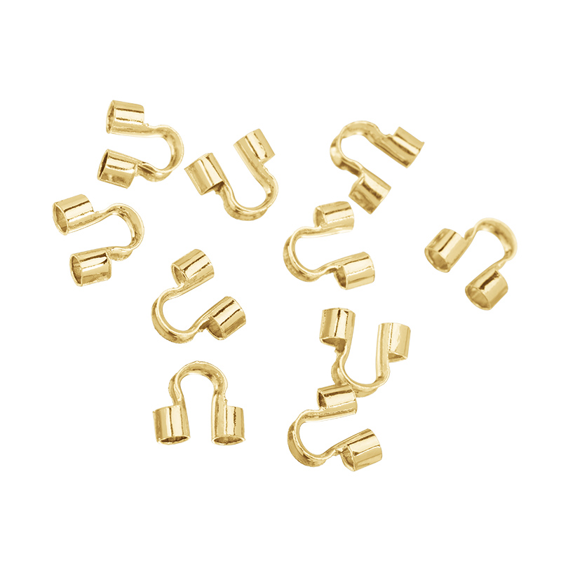 Фурнитура для бижутерии - протектор для толстого тросика. Материал: латунь, покрытие: золото. Размер: 5 x 6 x 2,2 мм, внутренний диаметр отверстий: примерно 1,6 мм. Размеры могут незначительно отличаться. Производство: Китай. Цена указана за упаковку (10 шт.).