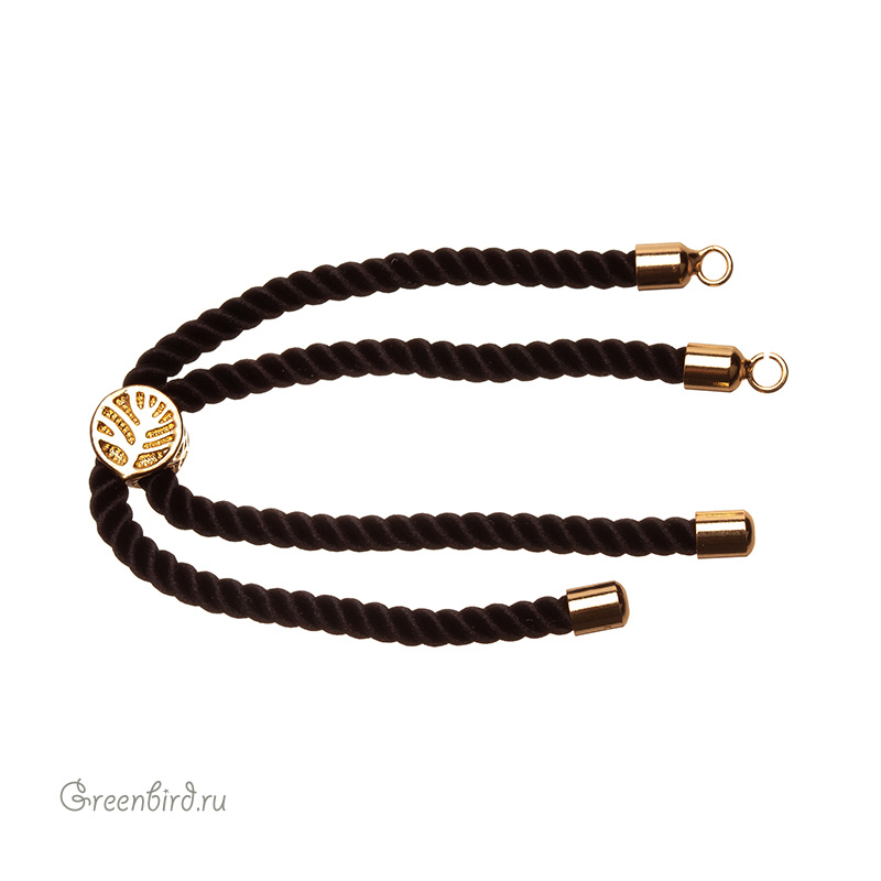 Фурнитура для бижутерии - плетеный витой шнур с колечками для крепления центрального элемента и стоппером. Материал шнура: нейлон; материал: латунь, покрытие: золото. Цвет: черный. Общая длина с колечками: 11,5 см, ширина: 4 мм, размер стоппера: 8,1 х 5,6 мм, внутренний диаметр колечек: 2,2 мм. Производство: Китай. Цена указана за 1 шт.