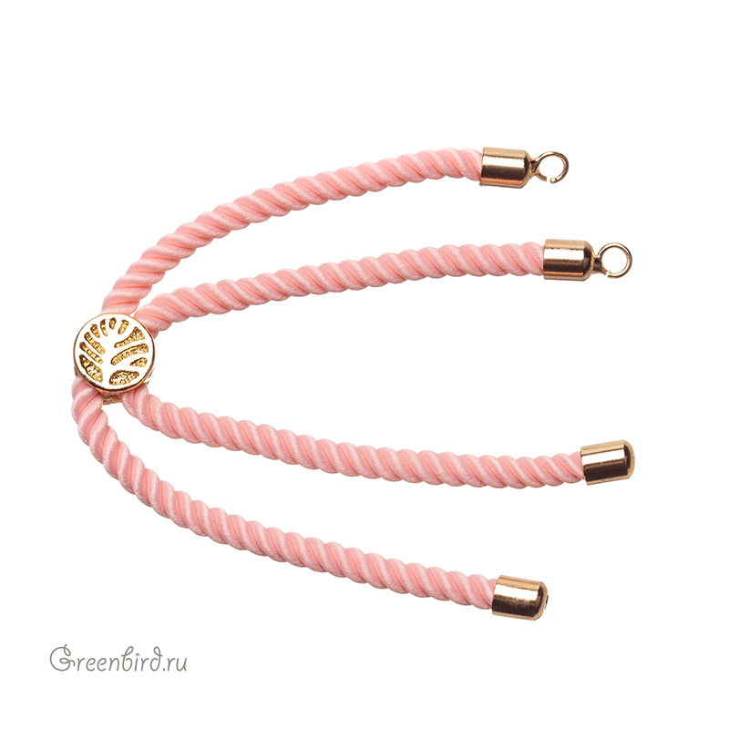 Фурнитура для бижутерии - плетеный витой шнур с колечками для крепления центрального элемента и стоппером. Материал шнура: нейлон; материал: латунь, покрытие: золото. Цвет: розовый. Общая длина с колечками: 11,5 см, ширина: 4 мм, размер стоппера: 8,1 х 5,6 мм, внутренний диаметр колечек: 2,2 мм. Производство: Китай. Цена указана за 1 шт.