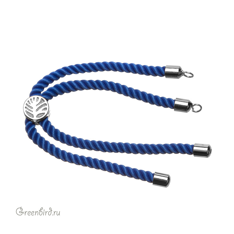 Фурнитура для бижутерии - плетеный витой шнур с колечками для крепления центрального элемента и стоппером. Материал шнура: нейлон; материал: латунь, покрытие: родий. Цвет: синий. Общая длина с колечками: 11,5 см, ширина: 4 мм, размер стоппера: 8,1 х 5,6 мм, внутренний диаметр колечек: 2,2 мм. Производство: Китай. Цена указана за 1 шт.