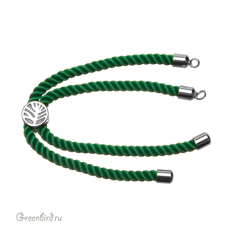 Фурнитура для бижутерии - плетеный витой шнур с колечками для крепления центрального элемента и стоппером. Материал шнура: нейлон; материал: латунь, покрытие: родий. Цвет: зеленый. Общая длина с колечками: 11,5 см, ширина: 4 мм, размер стоппера: 8,1 х 5,6 мм, внутренний диаметр колечек: 2,2 мм. Производство: Китай. Цена указана за 1 шт.