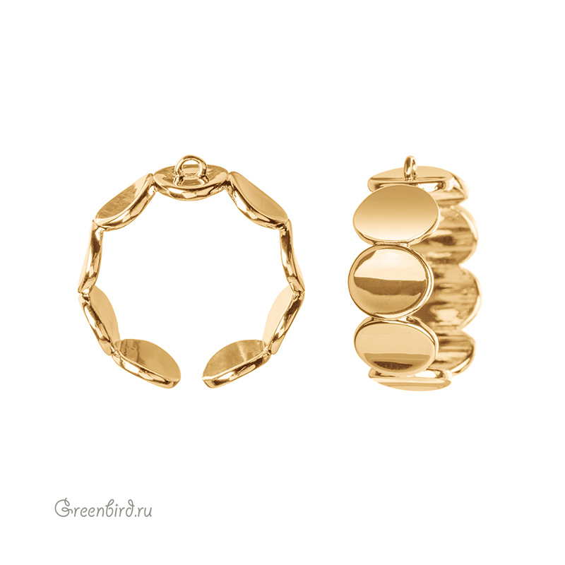 Фурнитура для бижутерии - основа для кольца с неразъёмной петелькой. Кольцо позволяет регулировать размер украшения. Материал: латунь, покрытие: золото. Диаметр: 21 мм, ширина: 9 мм, толщина: 1,5 мм. Диаметр отверстия: 1,3 мм. Производство: Китай. Цена указана за 1 шт.