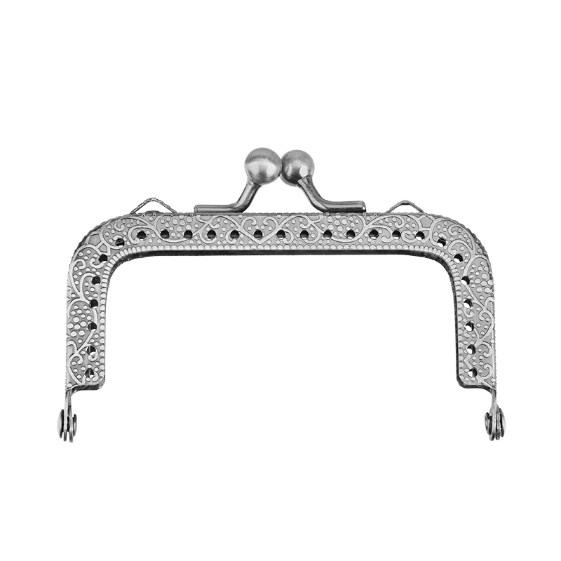 Пришивной фермуар для сумки прямоугольной формы. Металлическая фурнитура для авторских аксессуаров и рукодельных проектов с отверстиями для пришивания сумочки-основы и двумя крепениями для цепочки или ручки. Рамка-застёжка нужна для оформления сумочки, кошелька, косметички из бисера или текстиля. Придает изделию завершённый вид и обеспечивает надёжную фиксацию.