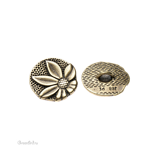Металлическая пуговица, цвет: античная латунь, размер: 17 х 18 мм. Производство: Израиль. Цена указана за 1 шт.