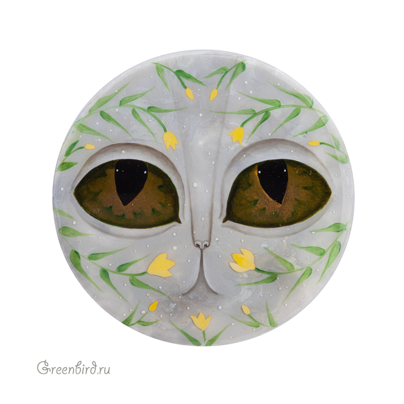 Кабошон сделан из акрила с росписью в смешанной технике, лаковое покрытие. Оборотная сторона не окрашена и не закрыта. На поверхности кабошона допустимы небольшие малозаметные неровности. Предназначен для вставок в бисерную вышивку или плетение.
