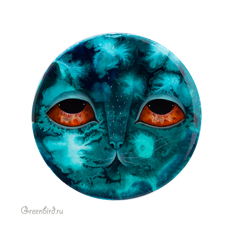 Кабошон сделан из акрила с росписью в смешанной технике, лаковое покрытие. Оборотная сторона не окрашена и не закрыта. На поверхности кабошона допустимы небольшие малозаметные неровности. Предназначен для вставок в бисерную вышивку или плетение.