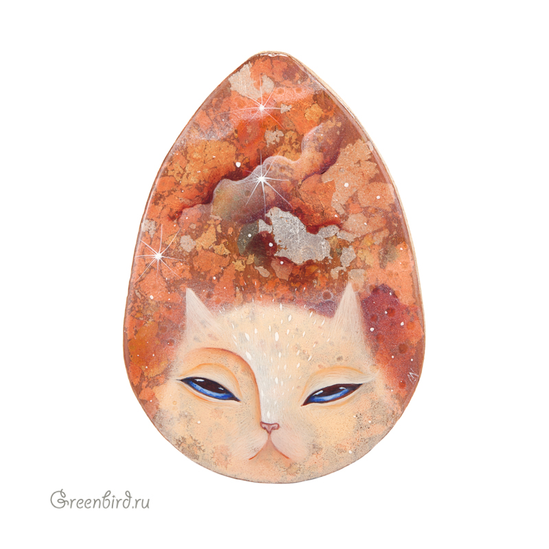 Авторский кабошон в единственном экземпляре, ручная роспись. Размер: 35 x 50 мм. Кабошон сделан из фанеры с многослойной росписью, лаковое покрытие. На поверхности кабошона допустимы небольшие малозаметные неровности.