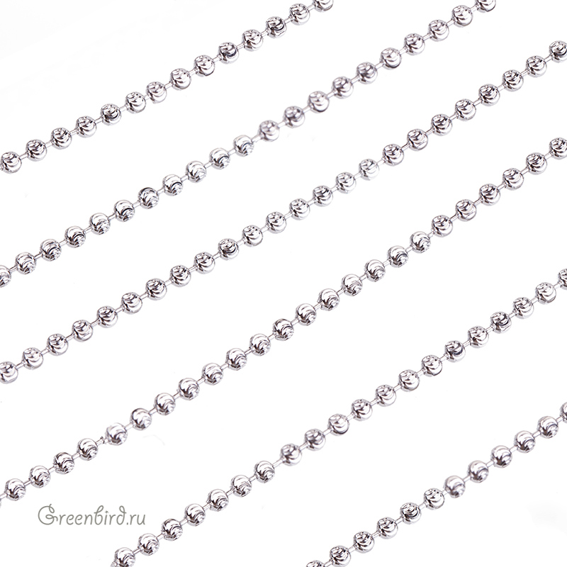 Фурнитура для бижутерии - цепочка с гранеными шариками. Материал: латунь, покрытие: родий. Диаметр шариков: 2 мм. Производство: Китай. Цена указана за 10 см. При заказе 2 или 3 единиц этого товара вы получите отрезок длиной 20 или 30 см соответственно.