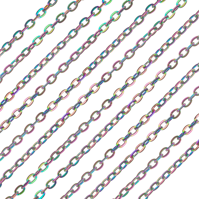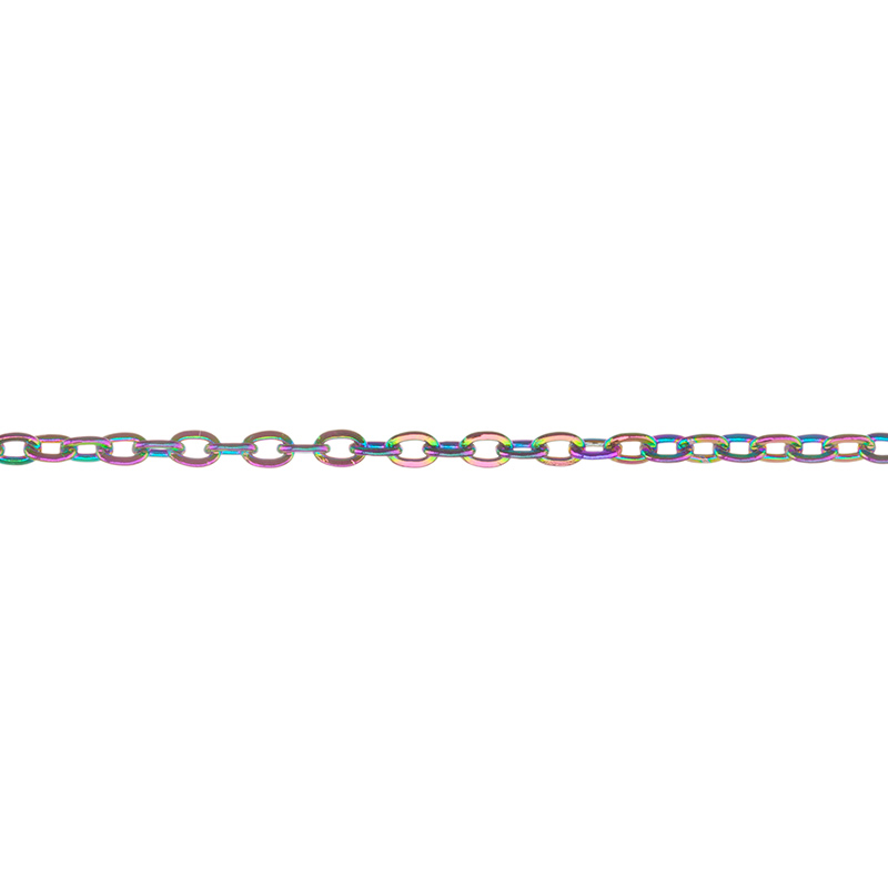 Фурнитура для бижутерии - цепочка декоративная тонкая. Материал: латунь, цвет покрытия: Iris, мультиколор. Размер звеньев: 2 х 1,5 мм, толщина звена: 0,3 мм. Производство: Китай. Цена указана за 10 см. При заказе 2 или 3 единиц этого товара вы получите отрезок длиной 20 или 30 см соответственно.