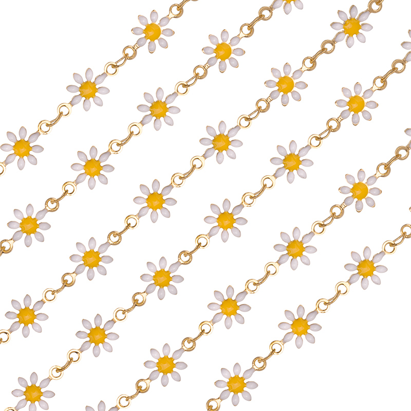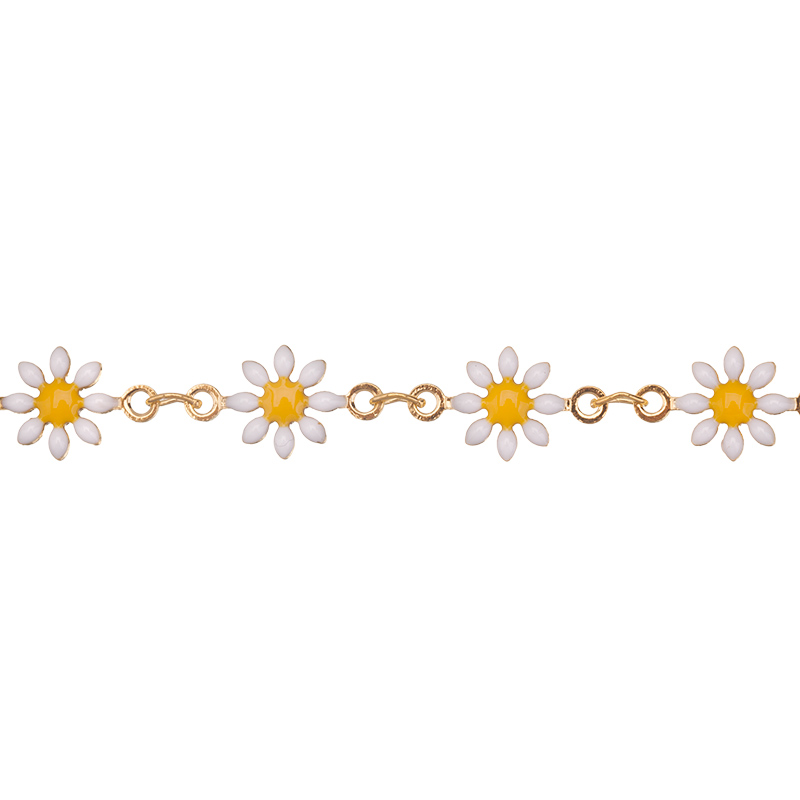 Фурнитура для бижутерии — цепочка декоративная фигурная, звенья плоские в форме ромашек. Материал: латунь, цвет покрытия: золото. Размер звеньев: 7 х 13 мм, толщина звена: 3,5 мм. Производство: Китай. Цена указана за 10 см. При заказе 2 или 3 единиц этого товара вы получите отрезок длиной 20 или 30 см соответственно.