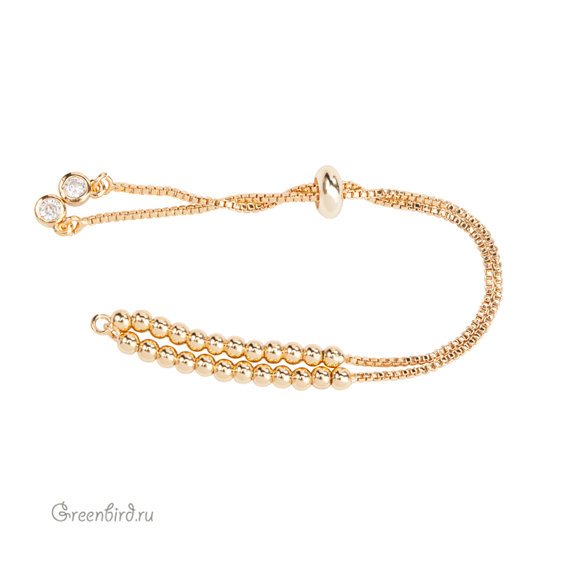 Фурнитура для бижутерии - подвеска-застежка в виде двух цепочек, на конце украшенных фианитами, со стоппером с силиконовой вставкой. Материал: латунь, покрытие: золото. Общая длина каждой цепочки: 12,9 см, длина цепочки с бусинами: 3 см, длина плетеной цепочки: 8,7 см, размер стоппера: 7,1 х 3 мм. Производство: Китай. Цена указана за 1 шт.