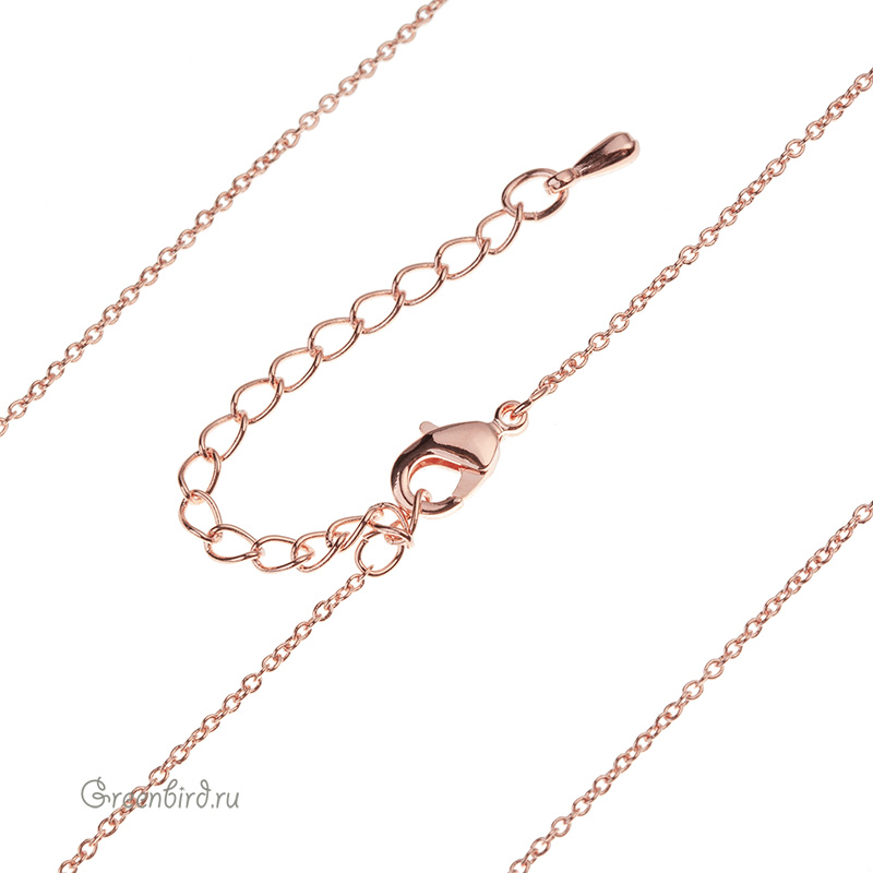 Фурнитура для бижутерии - цепочка с замочком-лобстером ультратонкая. Материал: латунь, покрытие: розовое золото. Длина основной цепочки с замочком: 42,5 см, размер звеньев: 1,15 х 1,4 мм, удлинитель: 5 см. Производство: Корея. Цена указана за 1 шт.