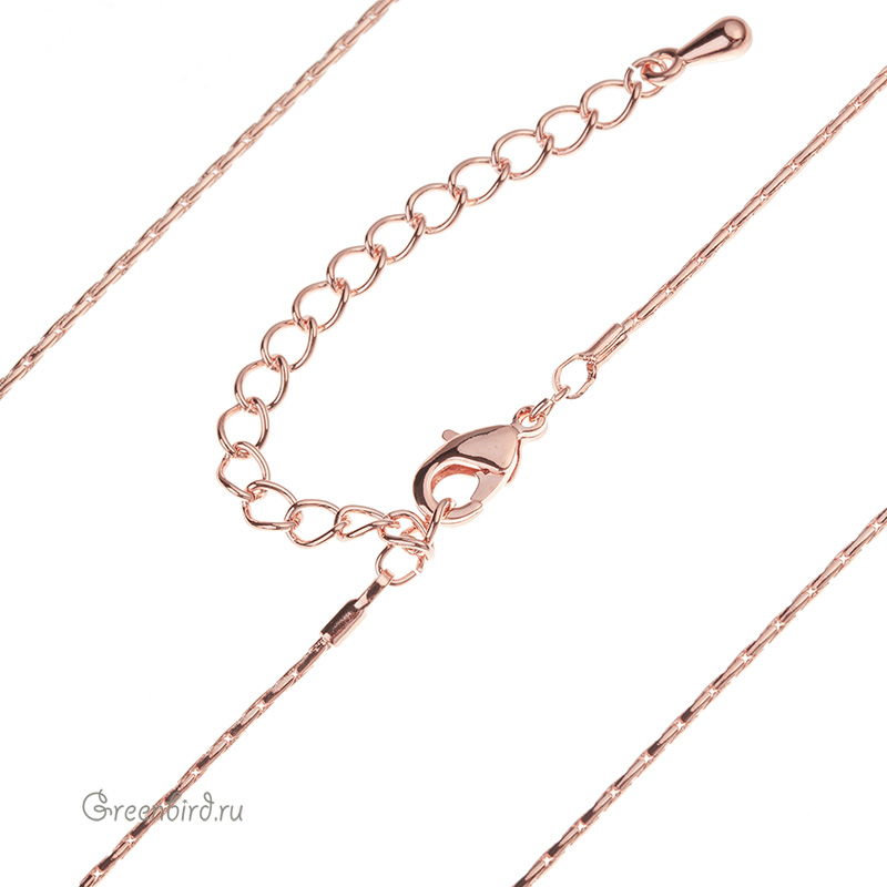 Фурнитура для бижутерии - цепочка с замочком-лобстером (якорное сколоченное плетение). Материал: медь, покрытие: розовое золото. Длина основной цепочки с замочком: 45 см, толщина: 1,1 мм, удлинитель: 5 см. Производство: Корея. Цена указана за 1 шт.
