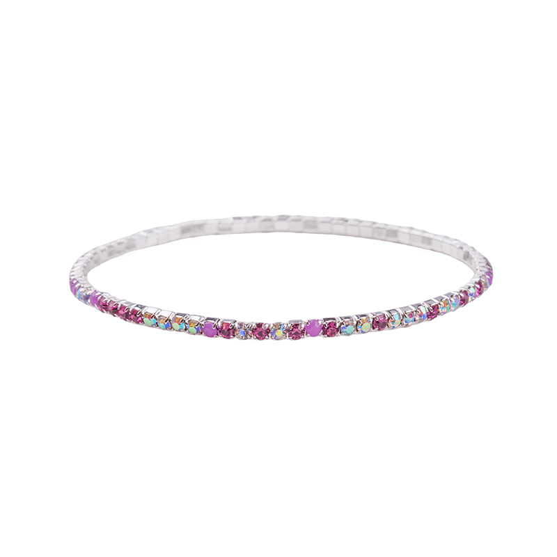 Браслет теннисный из страз в оправе, на резинке, однорядный, без