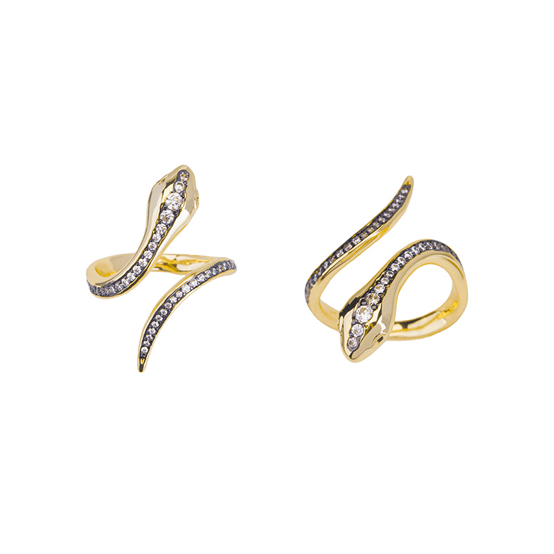 Кольцо разъемное с фианитами. Размер украшения регулируется. Материал: латунь, покрытие: золото. Цвет вставки: белый, зеленый. Размер: 35 x 15 мм, внутренний диаметр кольца: от 17 мм, толщина шинки: 3 мм. Производство: Китай. Цена указана за 1 шт.