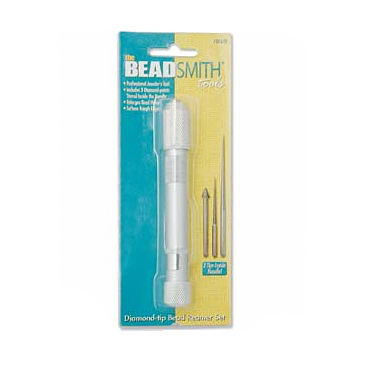 Инструмент для расширения отверстий у бусин и сглаживания острых углов. В наборе алюминиевый держатель и 3 насадки различной формы.