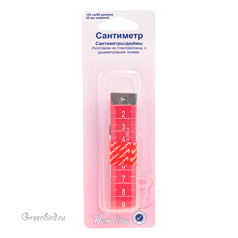 Сантиметровая лента Hemline двусторонняя с сантиметровой и дюймовой разметкой на разных сторонах и с обозначенными дециметровыми зонами. Укреплена стекловолокном, чтобы избежать деформации и растяжения. Материал: пластик, металл, стекловолокно, цвет: красный/белый. Длина: 150 см (60 дюймов), ширина: 20 мм. Цена указана за 1 шт.