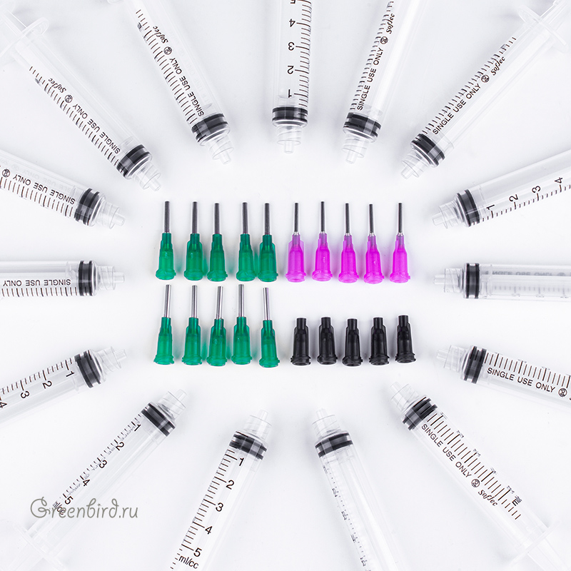 Комплект шприцов с насадками для приклеивания страз и других мелких элементов. Подходит для точечного нанесения эпоксидного клея. Специальный завинчивающийся носик препятствует протечкам клея в процессе работы. Материал: пластик (ПВХ), резина, металл.