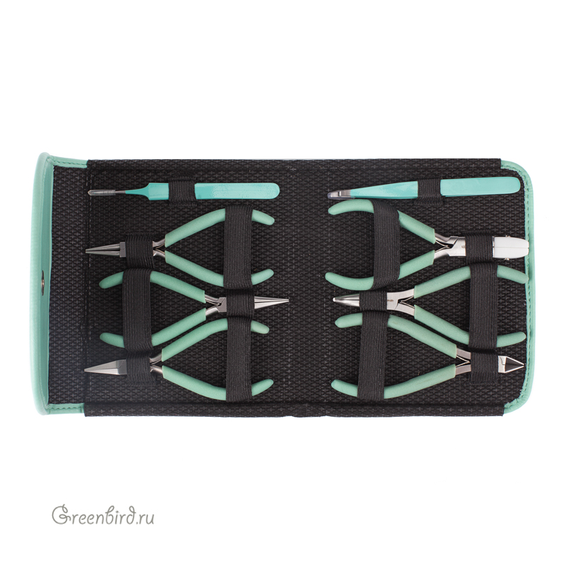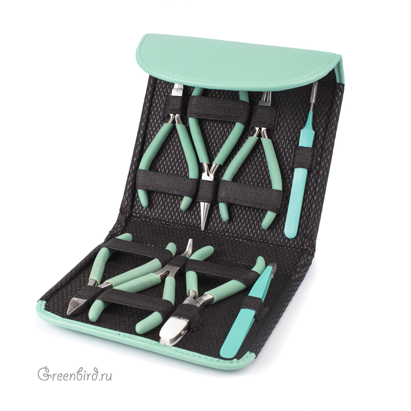 Набор из восьми инструментов Beadsmith в удобном чехле с клапаном на магнитной застежке, серия Color Options. Особая конструкция плотно смыкающегося шарнира и расположенные с двух сторон язычки-пружинки обеспечивают точный и мягкий ход инструментов, а отполированный металл позволяет использовать их для работы с фурнитурой, имеющей различное покрытие. Текстурированные ручки препятствуют скольжению инструмента в руке. Пинцеты снабжены силиконовыми защитными колпачками.
