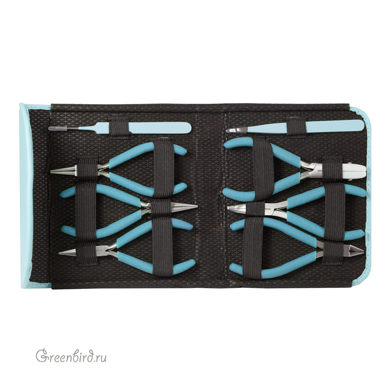 Набор из восьми инструментов Beadsmith в удобном чехле с клапаном на магнитной застежке, серия Color Options. Особая конструкция плотно смыкающегося шарнира и расположенные с двух сторон язычки-пружинки обеспечивают точный и мягкий ход инструментов, а отполированный металл позволяет использовать их для работы с фурнитурой, имеющей различное покрытие. Текстурированные ручки препятствуют скольжению инструмента в руке. Пинцеты снабжены силиконовыми защитными колпачками.